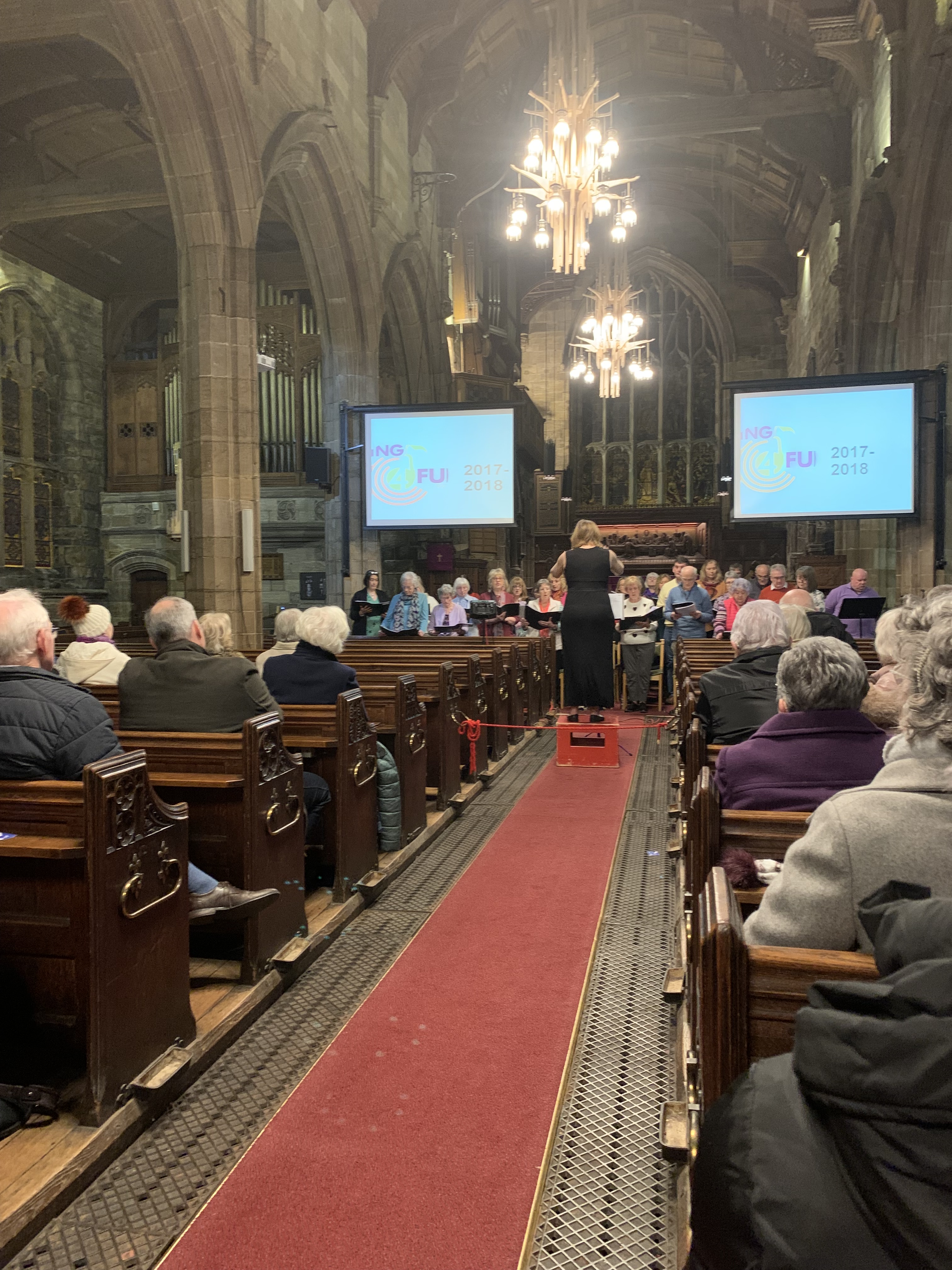 Parbold Sing4Fun provided an evening of fantastic entertainment for a large gathering; some local, others visitors. Many people have stopped me since the evening to say how much they’d enjoyed it, and I agree completely. If you weren’t there, I’d hope we’d be able to repeat the experience at some point in the future, albeit with a different programme. But there was, as they advertised, something for everyone. Sincere thanks go to all the individual members of the group, including, of course, their Leader, the irrepressible Jo MacRae, and their fantastically adept accompanist, Nigel Hill. And, of course to the members of the congregation of Ormskirk Parish Church who worked so hard on the refreshments and on manning the door! Wonderful stuff!!
