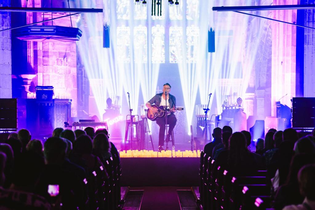 Around 250 visitors, almost all having little or no previous connection with Ormskirk Parish Church, gathered on 14 June to be treated to country music, both modern and traditional, hosted by Ethan Allen. Due to the event having had to be postponed for a fortnight, some members of the original line-up weren’t available and so the whole programme had been replanned. The result was a superb evening with very positive feedback from the audience members. As one of the warm-up acts, the main performer had decided to give his own daughter an opportunity to showcase her own musical talents, which she did in a couple of items, to great acclaim; still at school herself, she obviously has a very promising career ahead of her! Ethan himself was at pains to point out to the audience that we didn’t get funding from other than our congregation and that they were privileged to be at a concert in so iconic a building, which needed support; a great first concert under the banner of our Heritage Project aims and an equally helpful message being delivered! Grateful thanks are due to Mike Durgan of Proud House Productions and his team, who produced the evening so spectacularly.