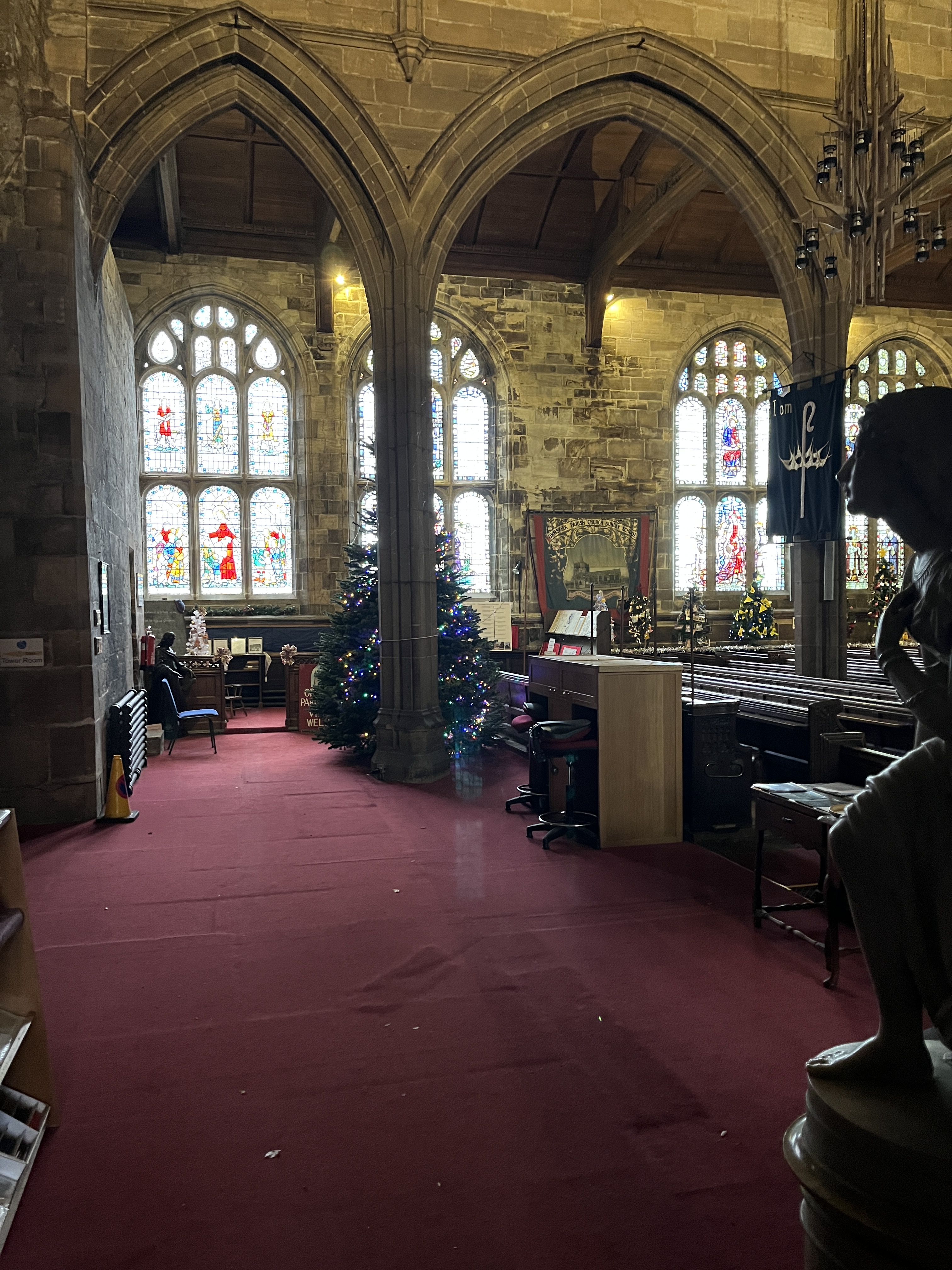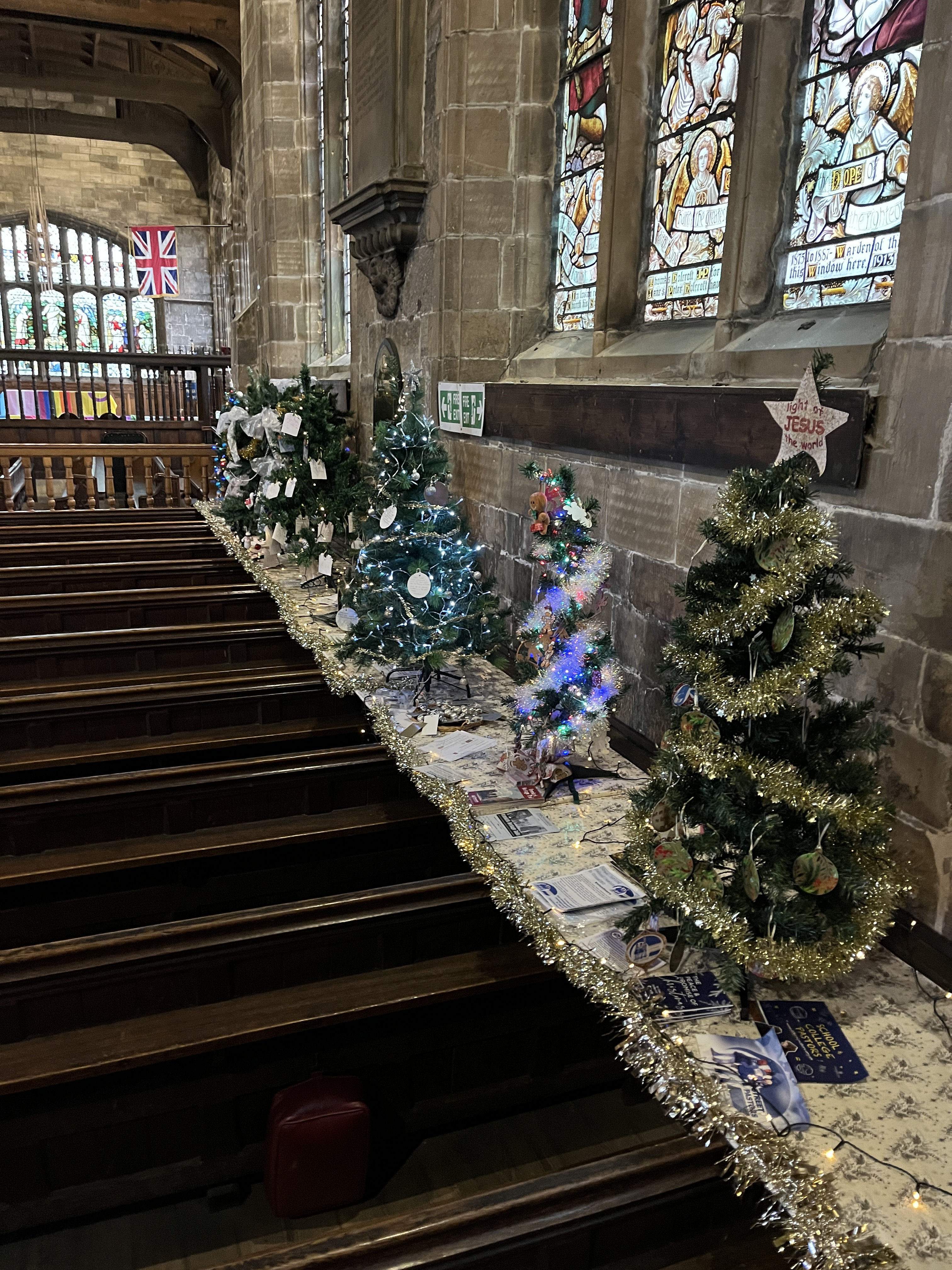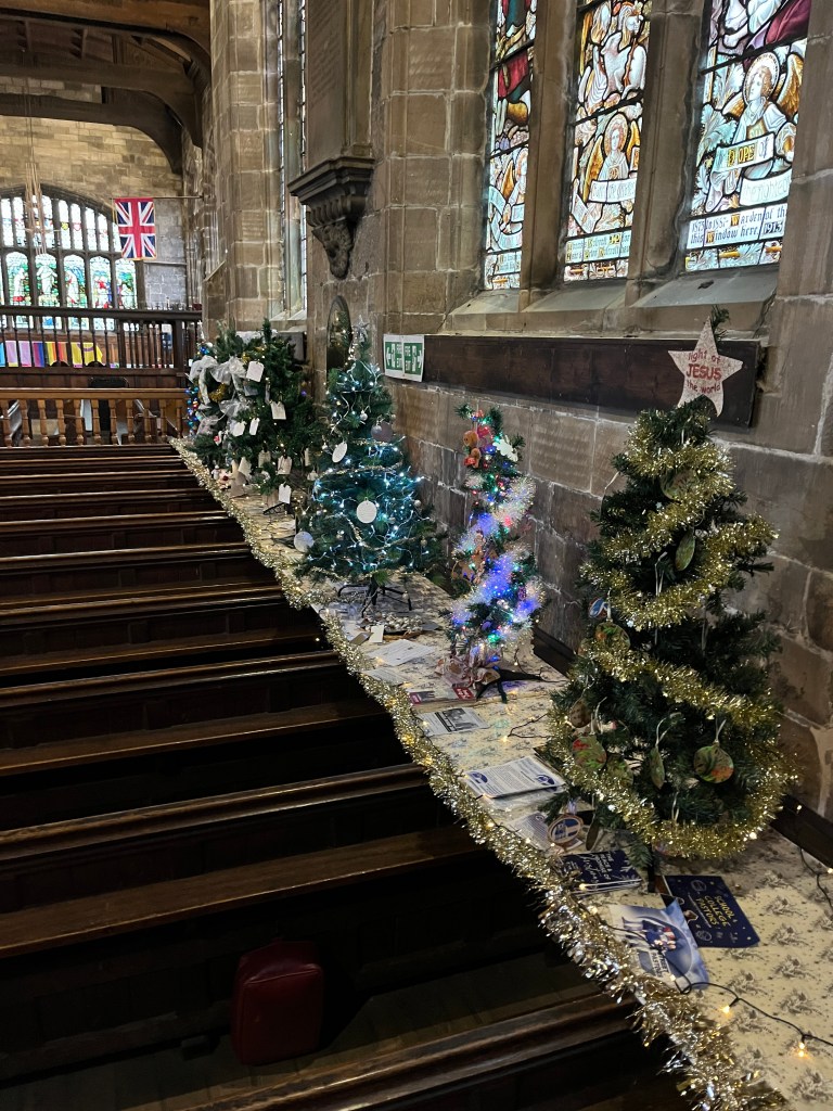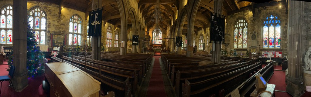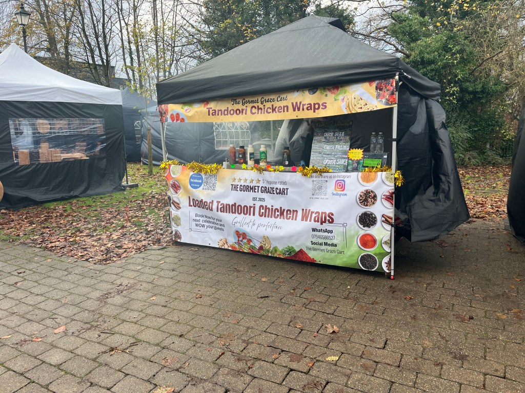 Following on from the past two years’ very successful festivals, this year’s event opened on Sunday 23rd November, to coincide with the switch-on of the Christmas Lights in the town centre. To add to the festivities this year, an artisanal craft fair was organised in New Church House, and hot food retail outlets and entertainments took place in the immediate vicinity of the church. The Tandoori wraps, supplied by a couple who had travelled all the way from Harrogate, were superb! I’m sure the paella was equally fine but didn’t have the time (or the bodily capacity!) to try that! Sadly, the weather was not the best, although we did escape a downpour!