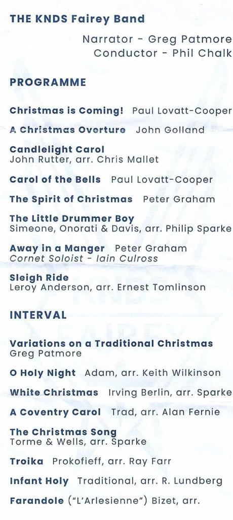 For me, as one born and bred in Lancashire, the evening took me back to my childhood in the 1960’s, when every town and village had a brass band, not to mention industrial works (of which Fairey Aviation was just one, along with Fodens, Black Dyke Mills, Royal Doulton, CWS, et al.) and, of course, the mines, such as Grimethorpe Colliery Band. To add to this were the bands maintained by churches and, possibly most significantly, the Salvation Army. Our village Walking Day (an event in which I hated being involved) was accompanied by two such – Rainford Silver Band and Bedford Church, Leigh, and the sound of a brass band, 67 years on, still invokes memories of those times. It was a tradition predominant, in particular, in the northern counties of Lancashire and Yorkshire – we have more in common than the Wars of the Roses would ever have suggested! Many years on, that tradition has faded somewhat, and it was good to see younger members of the Fairey Band keeping a sound alive which is absolutely exclusive to those big groups of brass instruments. Some of the players probably don’t even realise how significant the bands were to the fabric of society in the north, but once it has gone, it will be too late to rue the fact. As one who was, many years ago, a trombonist of little talent, I am nevertheless in a position to appreciate how good their playing really was; I didn’t hear a single ‘fluffed’ note, which is something quite common when pursing the lips to hit a high note. So, on a personal level, thanks once more to the Fairey Band, and may it go from strength to strength into the future!
